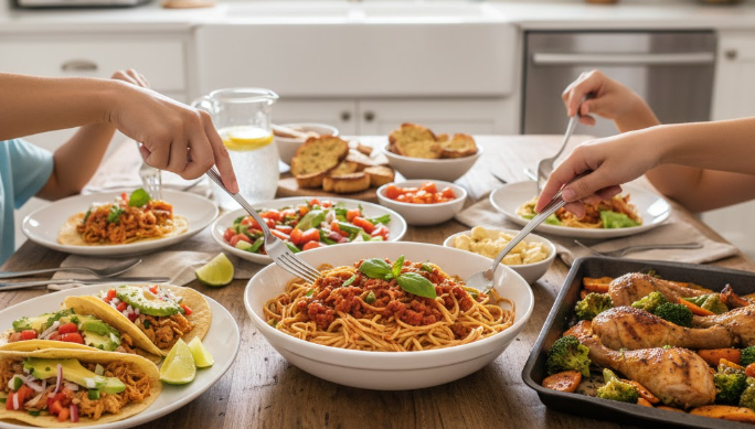 Family meals don’t need to be complicated. Think one-pan dishes, sheet-pan dinners, and slow cooker meals that save time and reduce cleanup.